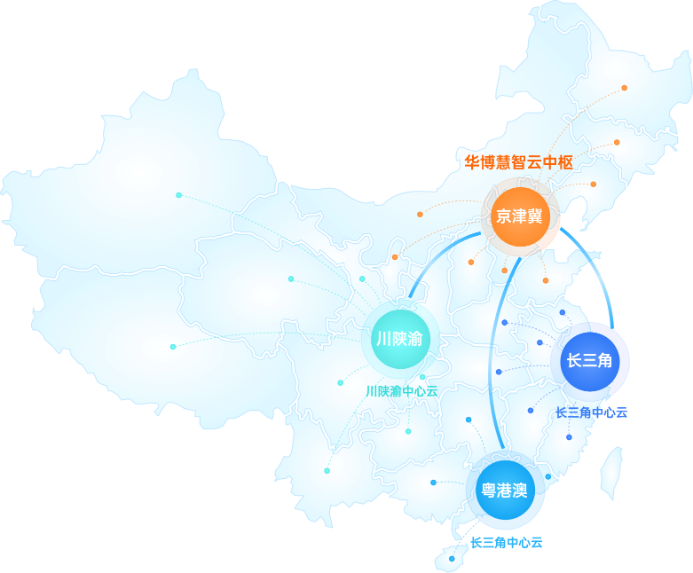 华博慧智云构建京津冀、长三角、粤港澳、川陕渝四大核心云枢纽。
